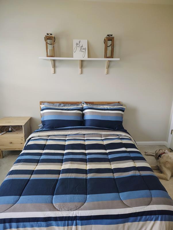 Nice boys room bed set, He love the feel of the lightweight comforter and yet it's comfy and warm