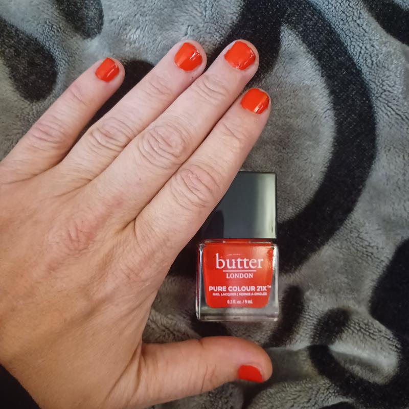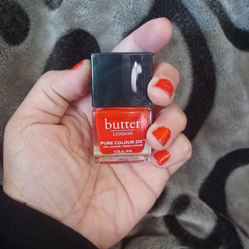 The Butter London Pure Color 21X nail lacquer in the shade Smashing is honestly one of the prettiest reds I have ever used and it looks expensive the second it hits your nails. The formula feels smooth and it goes on without streaks which makes it really easy to get that clean salon look at home. I love how rich the color is because it looks bold in the light but still classy when you are indoors. It dries faster than I expected and it did not chip on me for several days even though I am pretty rough with my hands. The brush is wide enough to cover the nail in a couple strokes which I really appreciate because it makes the whole process faster. Overall this shade lives up to its name because it really is smashing and it makes your nails look polished and put together with almost no effort. I receive this product for free in exchange for a review.