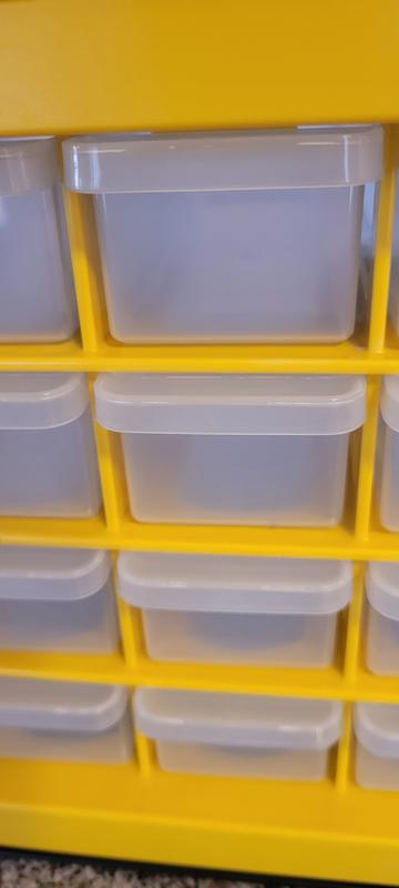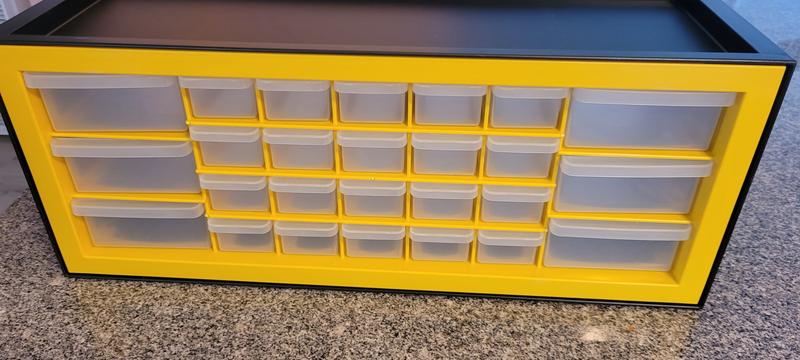 I love this IRIS Drawer Parts Cabinet in Black/Yellow! This is great for storing small parts or small objects. I like the color being yellow as it makes this easy to see and vibrant. It's also a happy color. This is well made but is plastic so could break. So far I've had a good experience with this cabinet. It fits well in the garage and is easy to move around as needed. It's a pretty convenient thing to have. I recommend this! It would make a great gift as well.