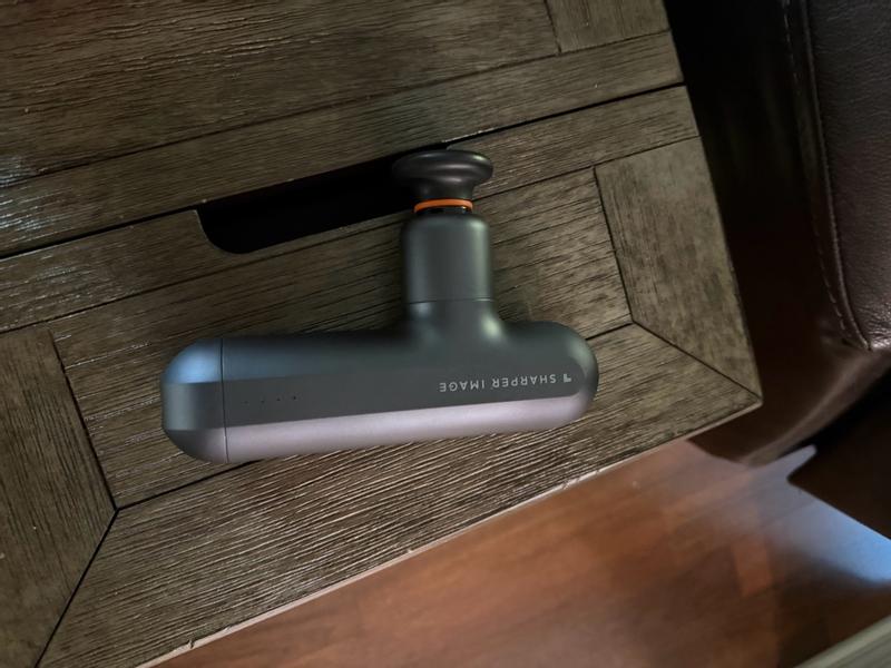 W have 2 gun massages, but we like this Sharper Image Powerboost Move Portable Percussion Massager Aero the most. It’s super quiet, we can’t barely here the noise, it has 4 speed from slow to fast, I myself like the 1st level, it’s just perfect for me. 4 attachments came with it, the FORK for back and shoulder, CONE is for trigger points and knots, FLAT is for all areas which i really like it. ROUND is for large, i like this one the most. I really like the way it’s designed, pretty cool and lightweight, i can take it wherever i want to, the batteries last super long. It helped me to relax and reduced my pain. Highly recommend for this.